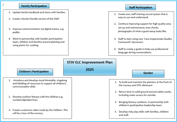 Our Improvement plan is an outline of the main areas we are looking to improve in the ELC over the next year.